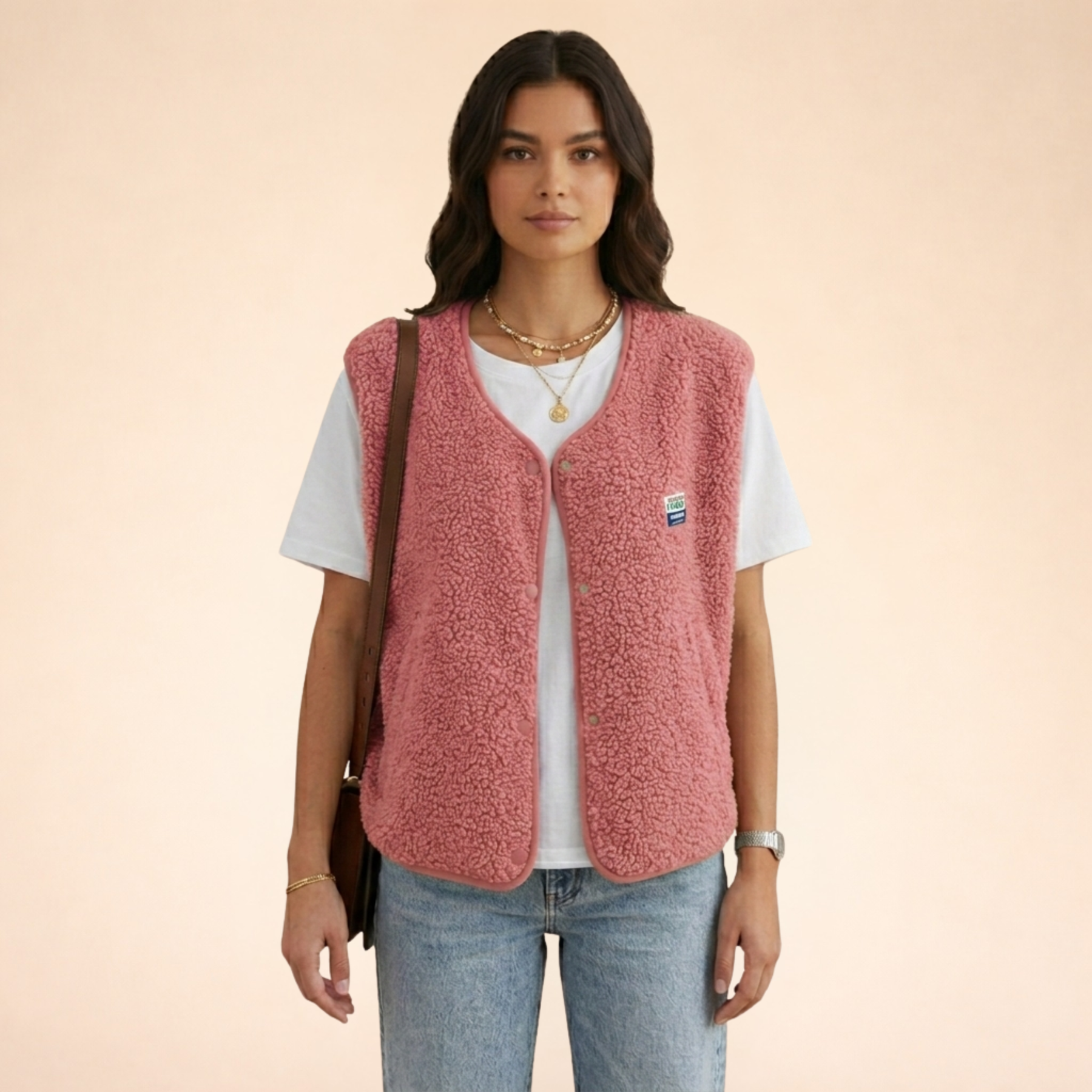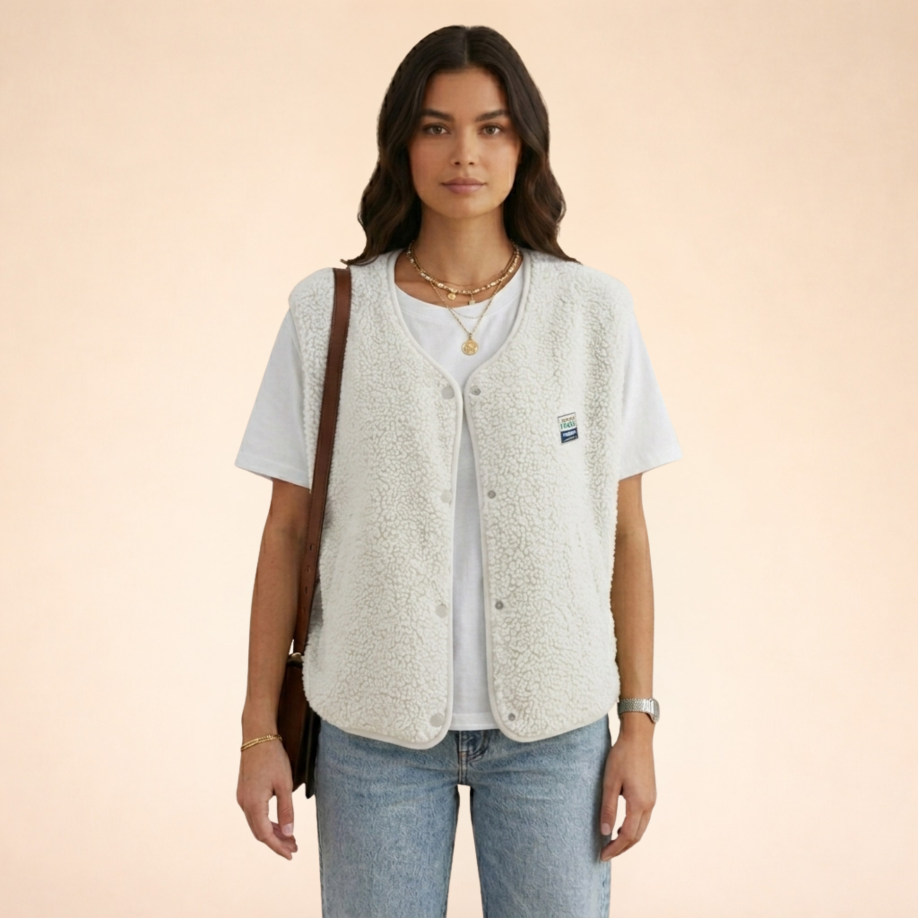 The Freya Fleece Vest blends cozy comfort with a relaxed, modern design. Made from soft, high-pile Sherpa fabric, it keeps you warm during chilly days while remaining lightweight and breathable. Its oversized fit allows easy layering, and the minimalist style pairs perfectly with casual outfits for a timeless, versatile look.